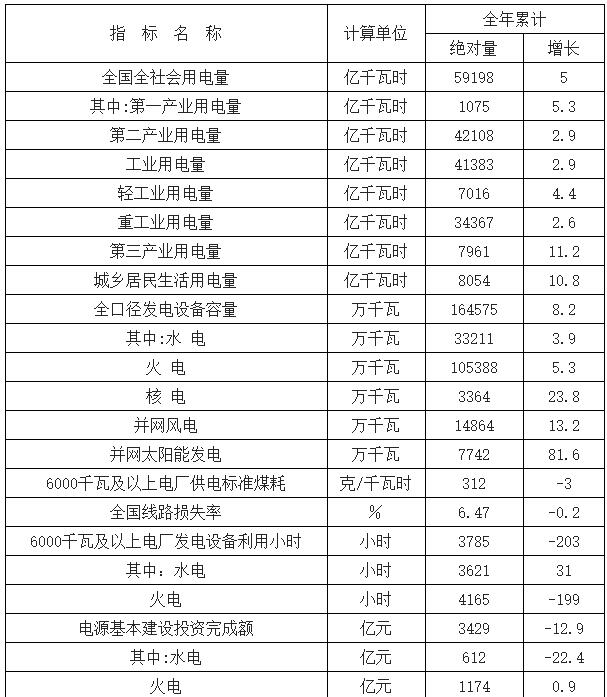 2017年中國電力運行現(xiàn)狀分析數(shù)據(jù)顯示,2016年,全社會用電量59198億千瓦時,同比增長5.0%。分產(chǎn)業(yè)看,第一產(chǎn)業(yè)用電量1075億千瓦時,同比增長5.3%;第二產(chǎn)業(yè)用電量42108億千瓦時,同比增長2.9%;第三產(chǎn)業(yè)用電量7961億千瓦時,同比增長11.2%;城鄉(xiāng)居民生活用電量8054億千瓦時,同比增長10.8%。