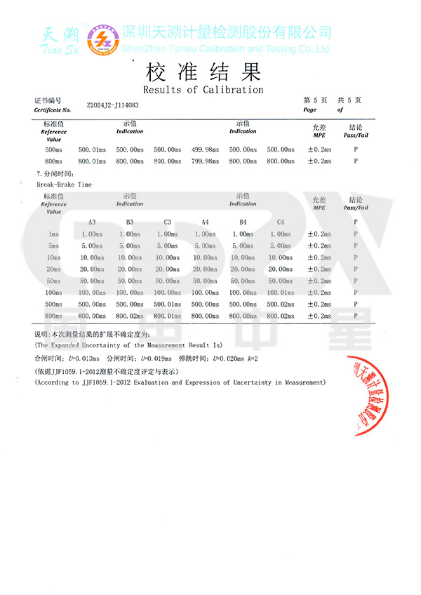 ⑷、可測斷口合、分閘時間、三相不同期、彈跳時間及次數(shù)